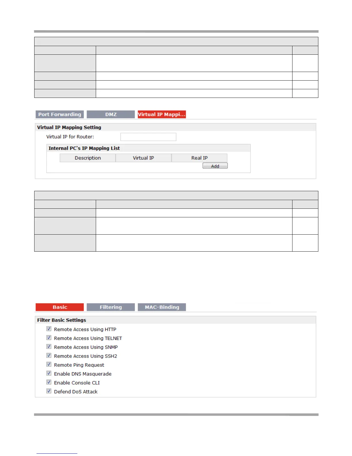 This section allows users to set the firewall parameters.