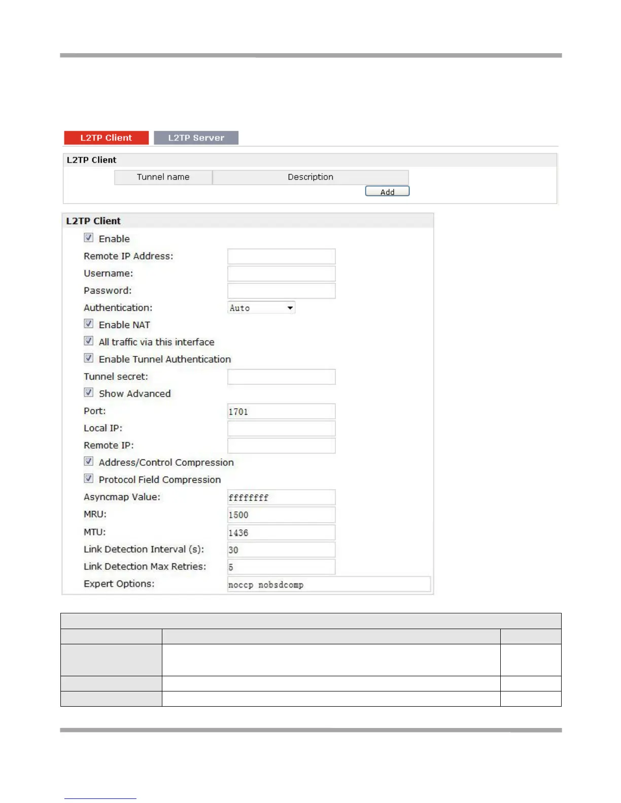Robustel GoRugged R3000 Lite - Configuration > L2 TP