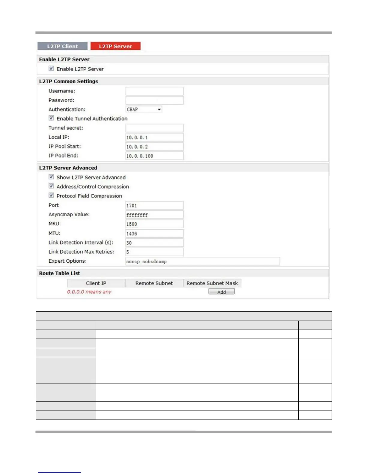 Tick to enable L2TP server.