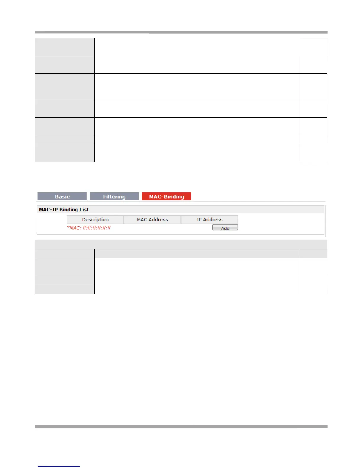 The defined host (MAC) on the LAN side only can use the defined IP address to