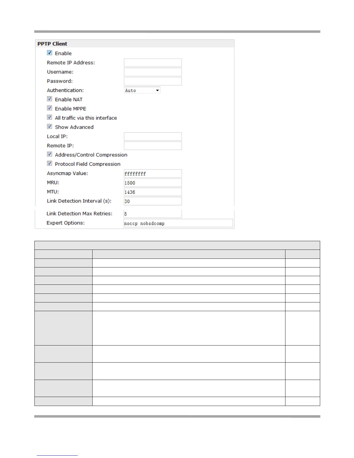 Tick to enable the PPTP client advanced setting.