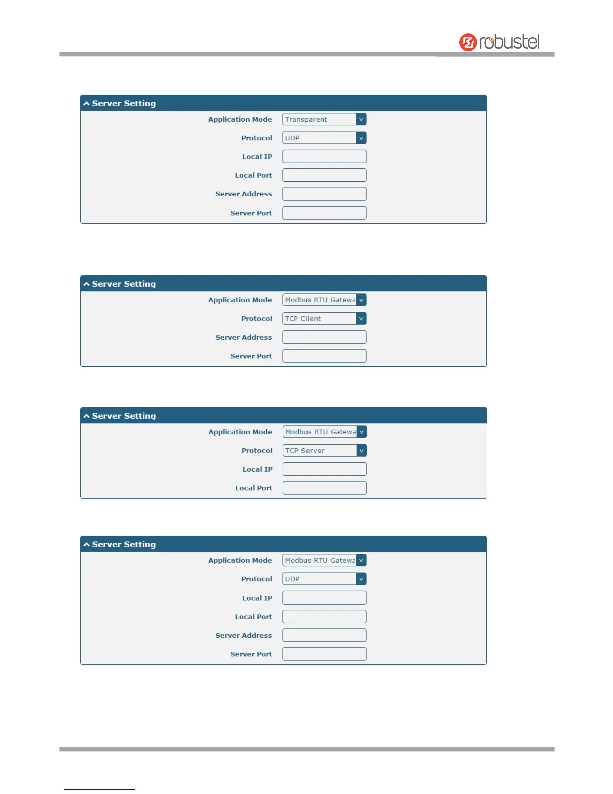 The window is displayed as below when choosing “Modbus RTU Gateway” as the application mode and “UDP”