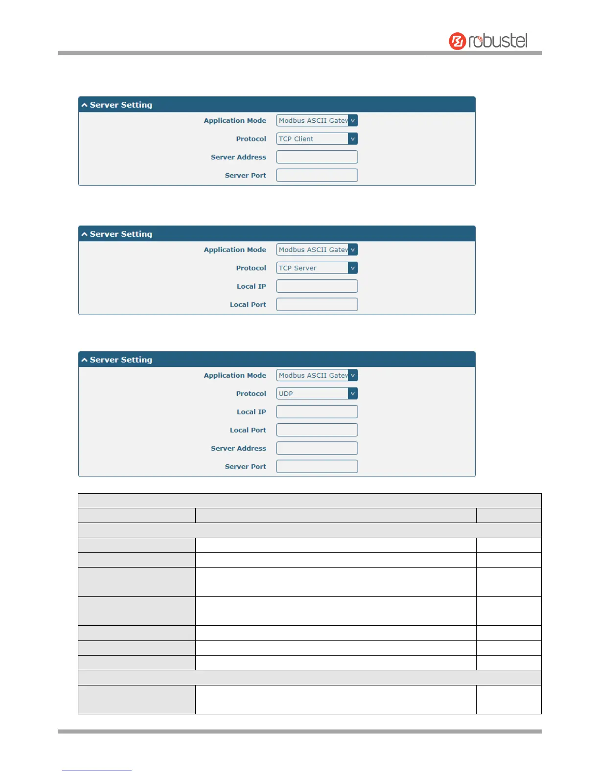 The window is displayed as below when choosing “Modbus ASCII Gateway” as the application mode and “UDP”