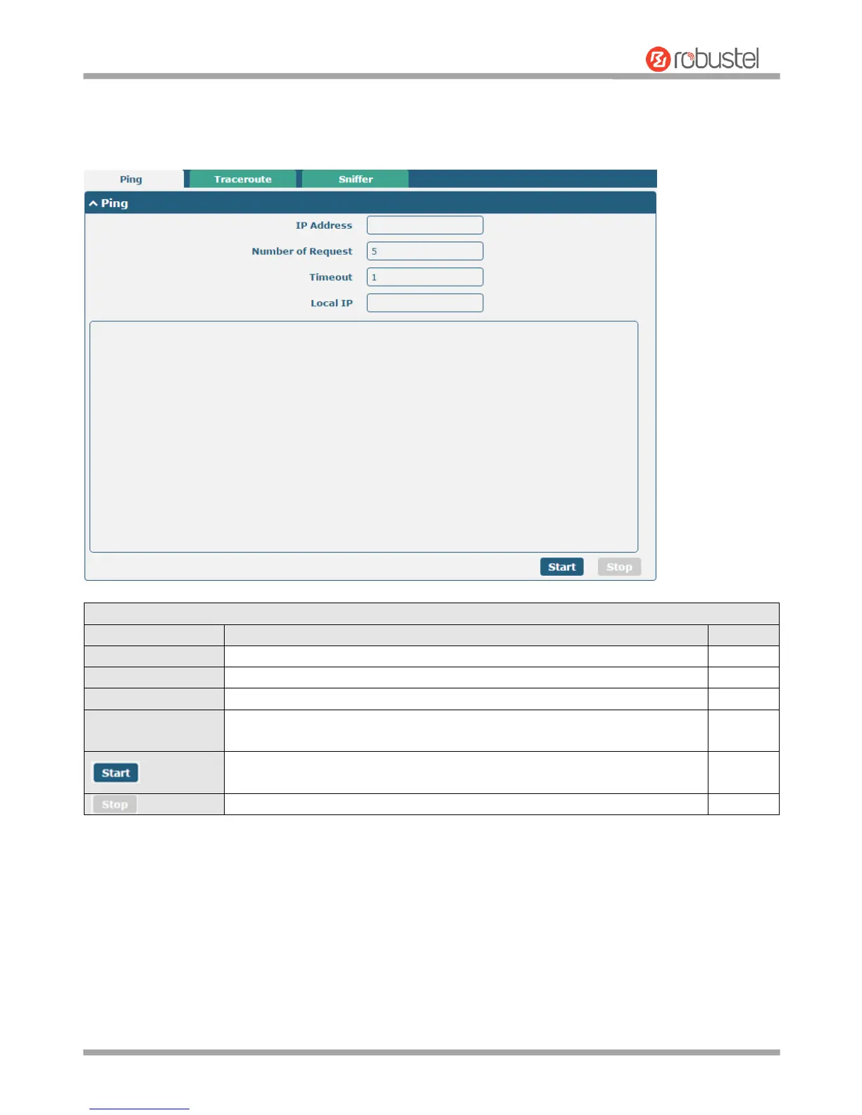 This section provides users three tools: Ping, Traceroute and Sniffer.