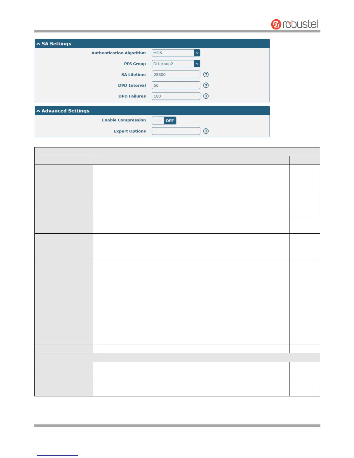 Select from “MD5”, “SHA1”, “SHA2 256” or “SHA2 512” to be used in SA