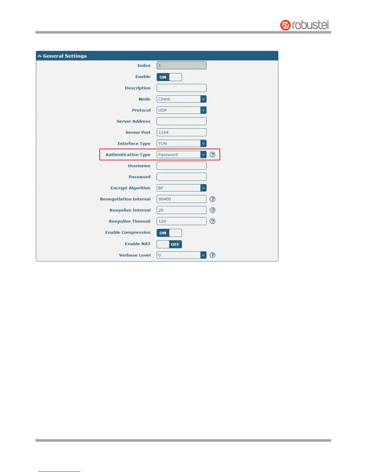 The window is displayed as below when choosing “Password” as the authentication type.