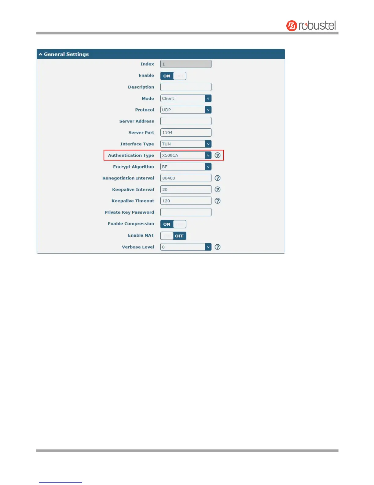 The window is displayed as below when choosing “X509CA” as the authentication type.