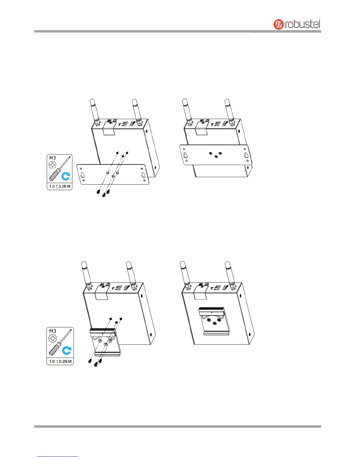 Use 3 pcs of M3*6 flat head Phillips screws to fix the DIN rail to the router, and then hang the DIN rail on the