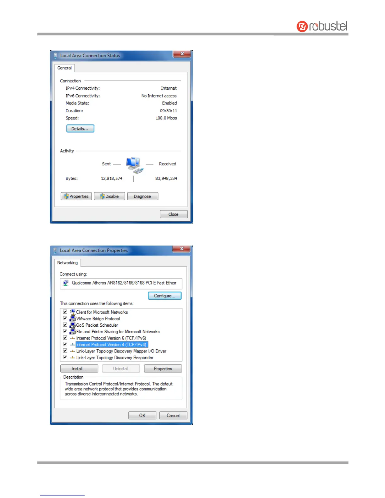 2. Click Properties in the window of Local Area Connection Status.