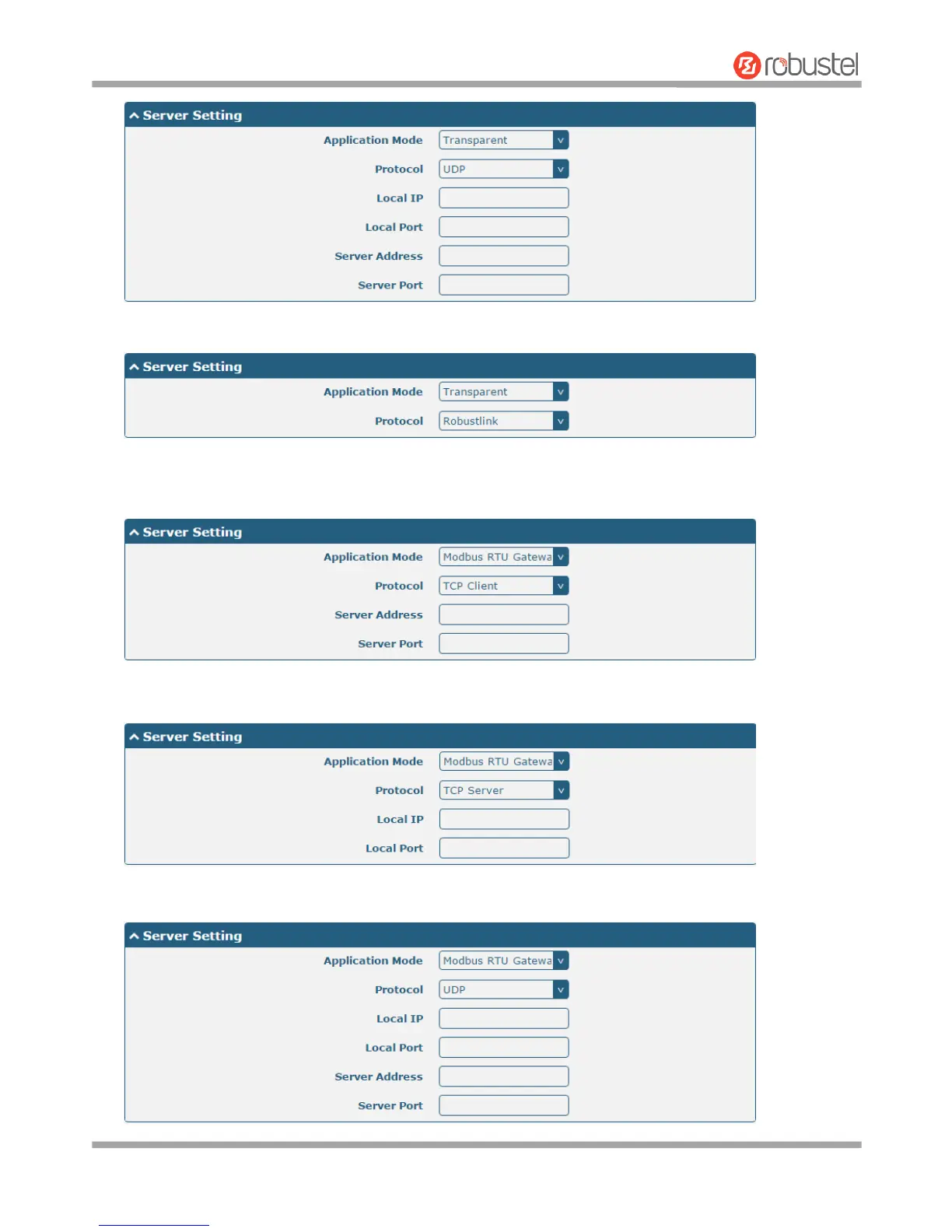 The window is displayed as below when choosing “Modbus RTU Gateway” as the application mode and “UDP”