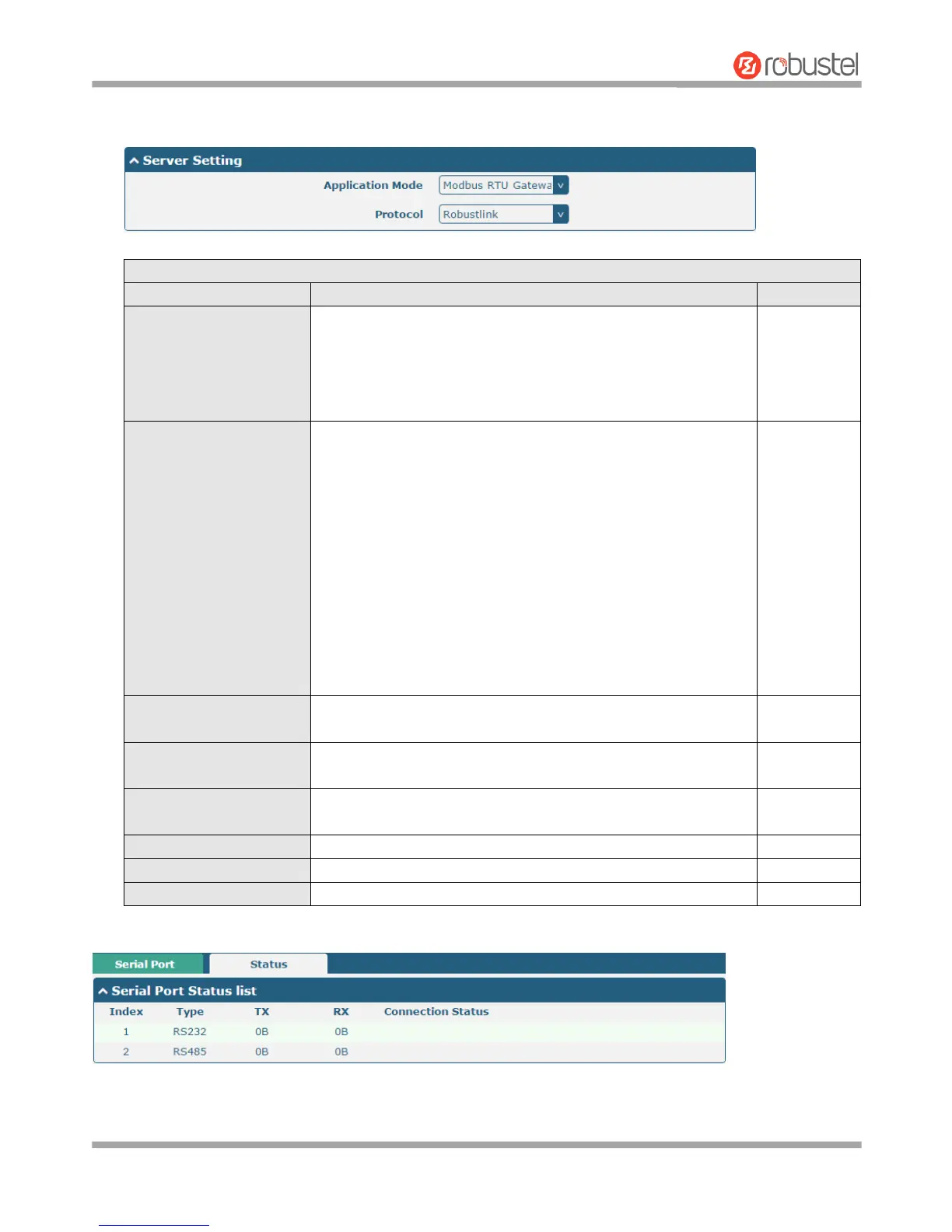 Select from “TCP Client”, “TCP Server”, “UDP” or “Robustlink”.