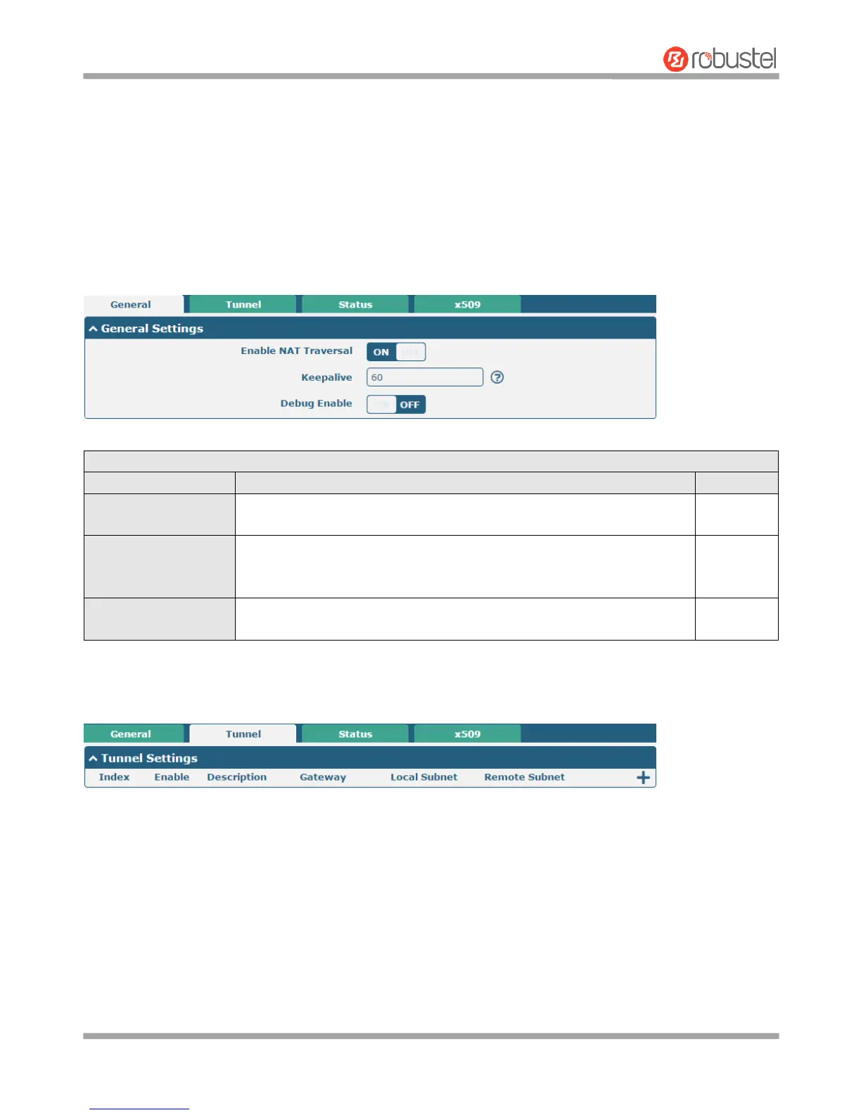 This section allows you to set the IPsec and the related parameters. Internet Protocol Security (IPsec) is a protocol