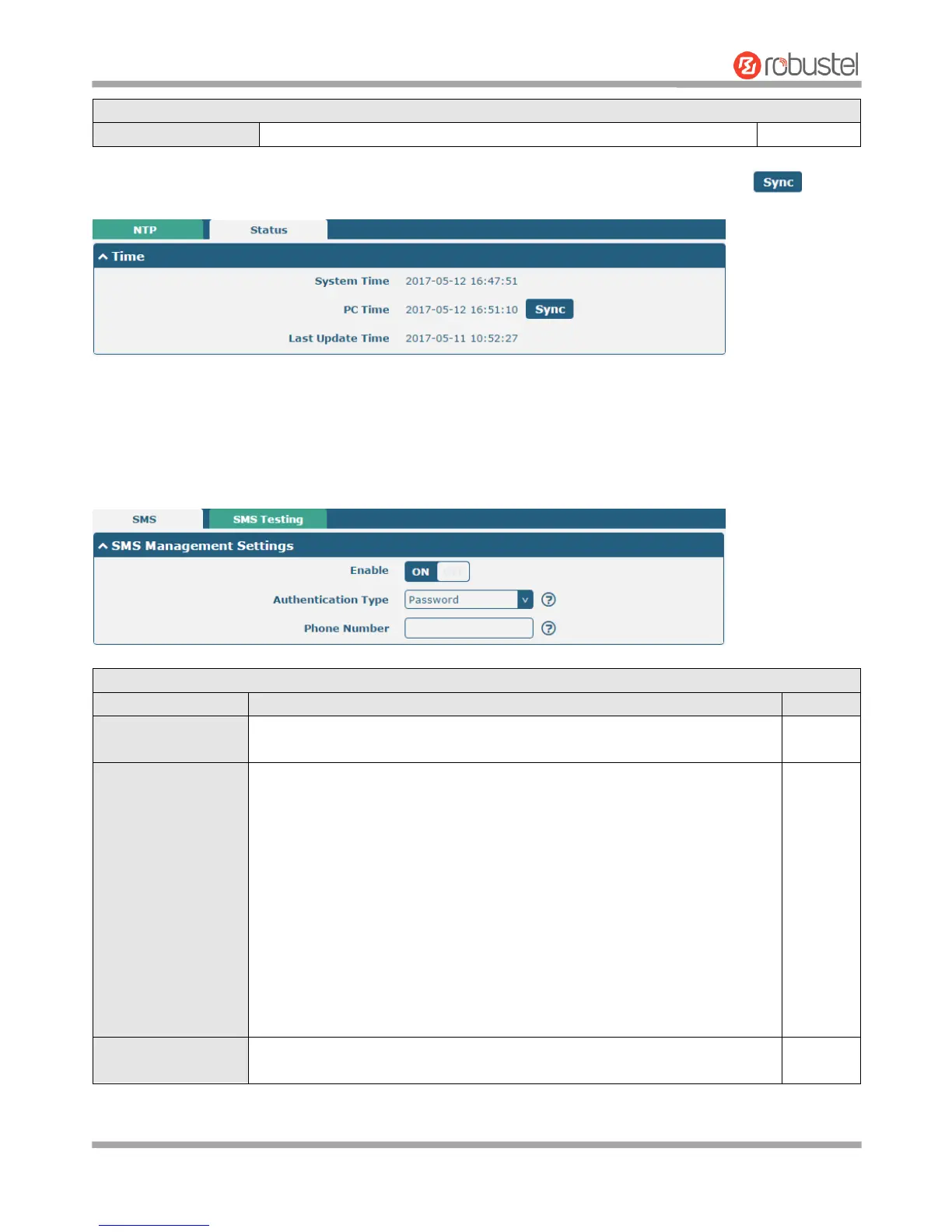 This section allows you to set SMS parameters. Router supports SMS management, and user can control and
