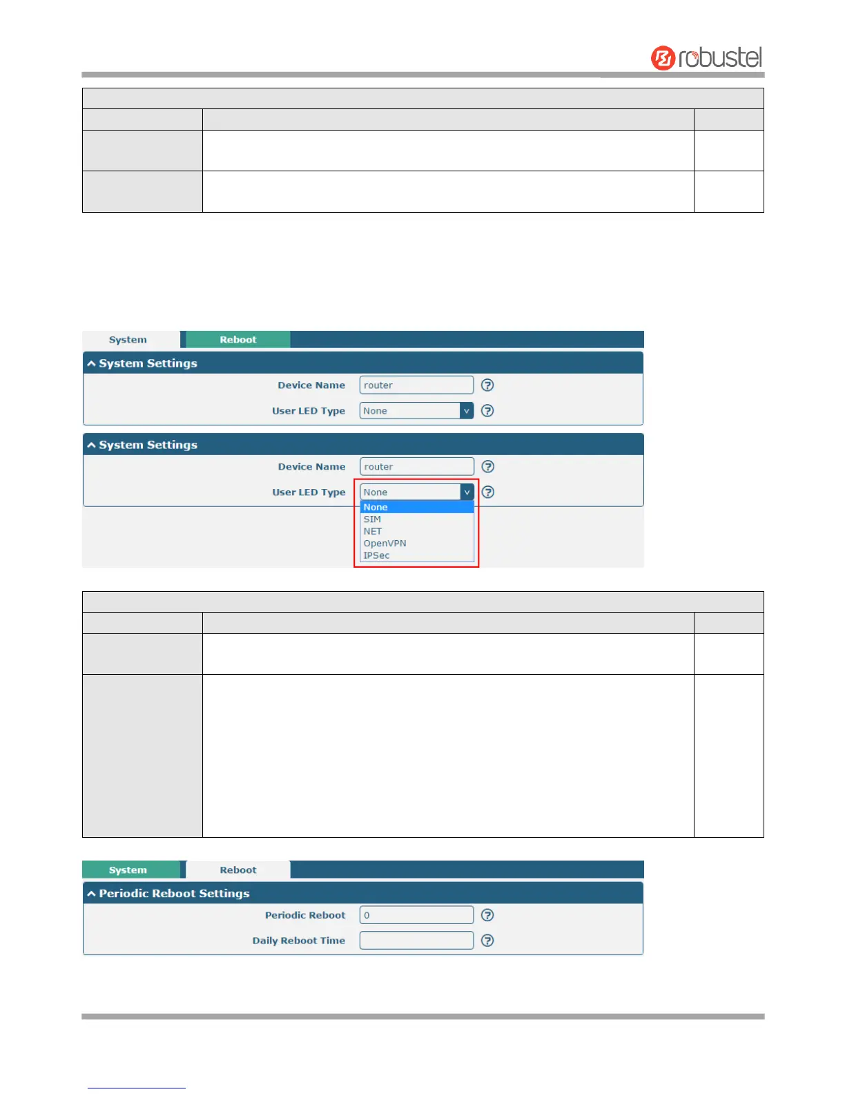 Specify the display type of your USR LED. Select from “None”, “SIM”, “NET”,