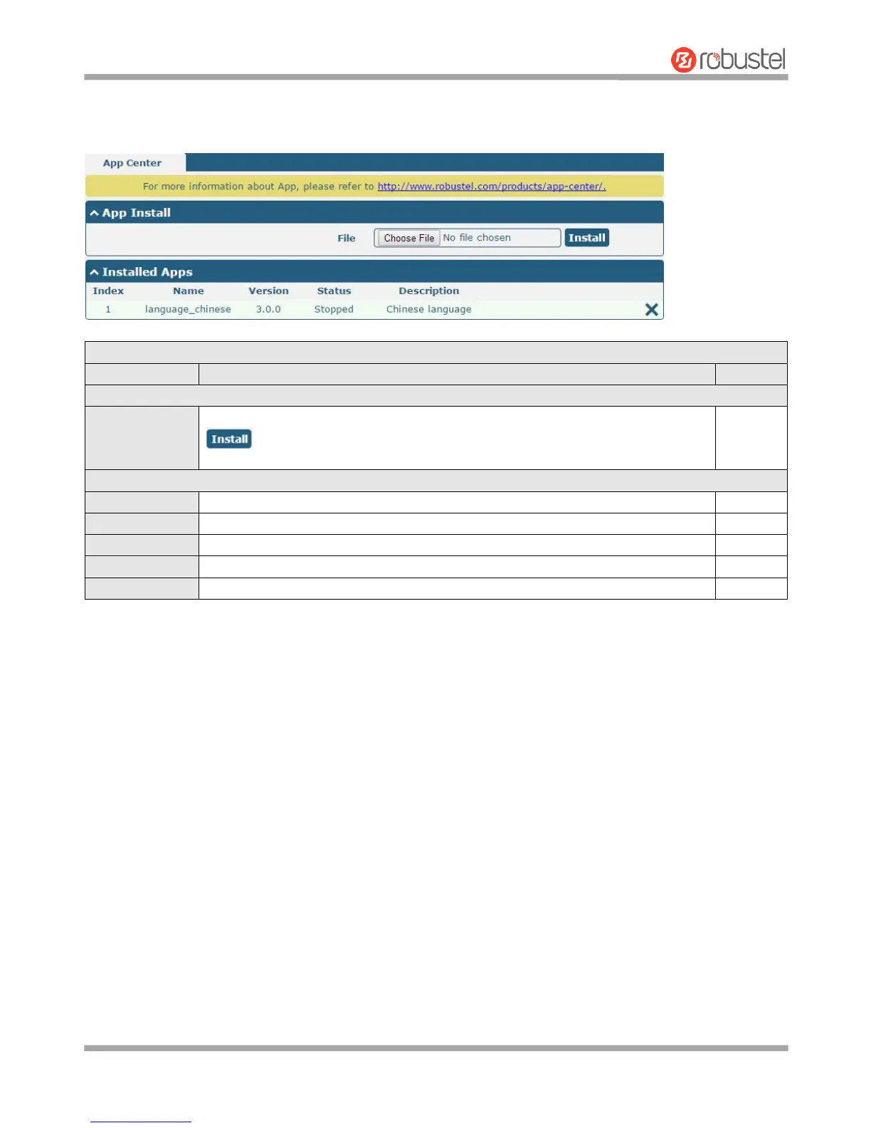 Note: File format should be xxx.rpk, e.g. R3000 Lite-robustlink-1.0.0.rpk.