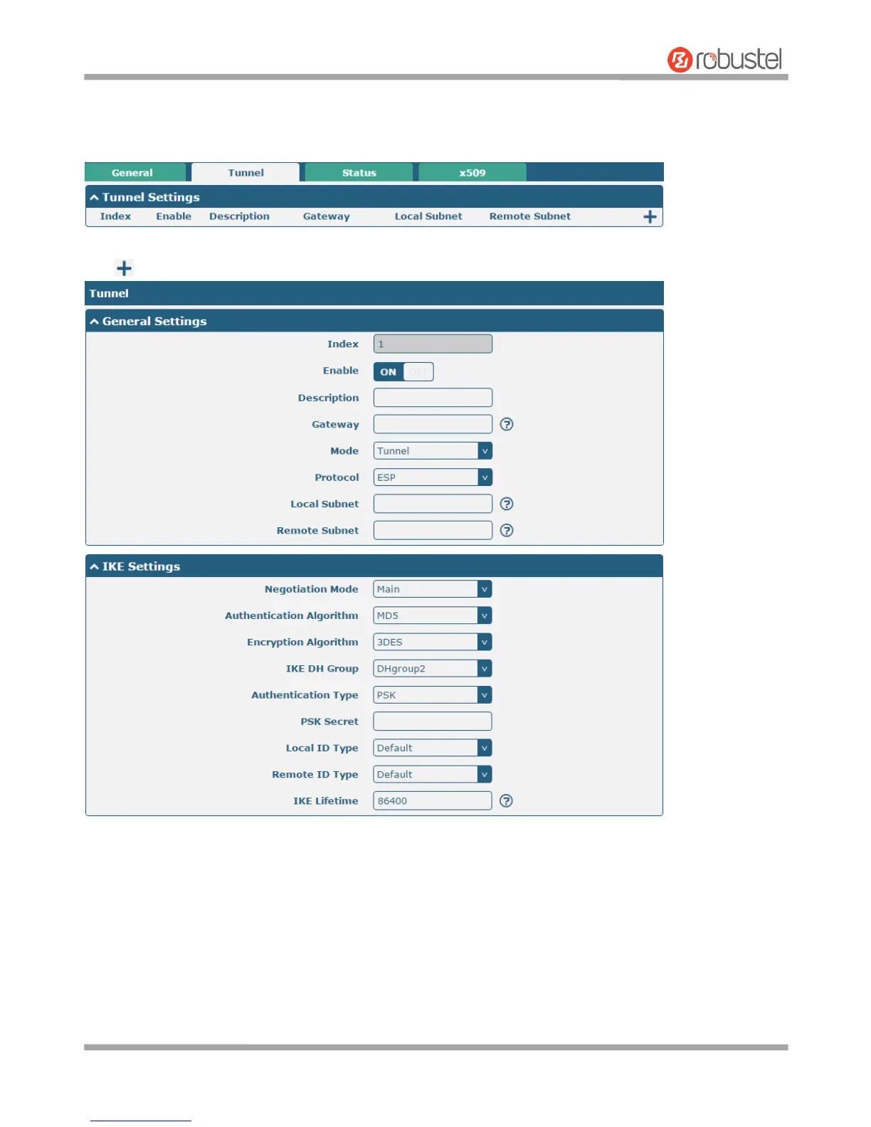 The window is displayed as below by clicking VPN > IPsec > Tunnel.