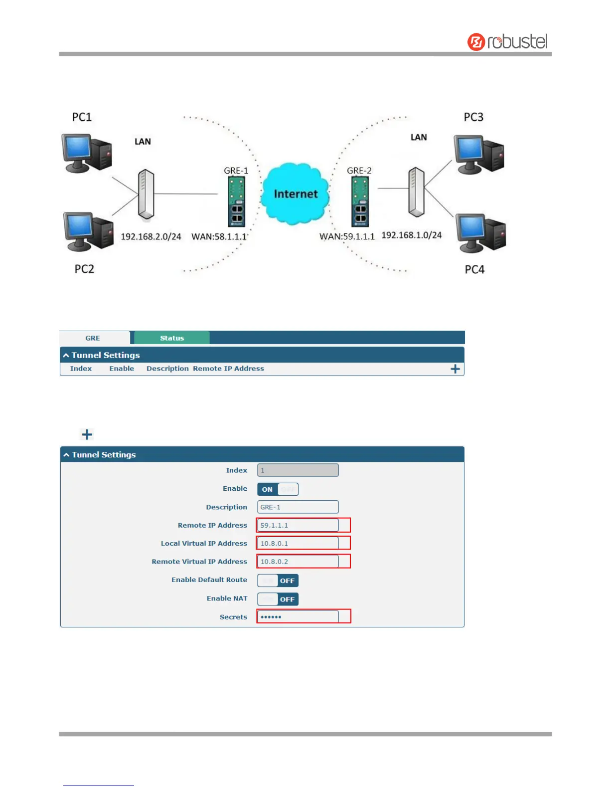 Click button and set the parameters of GRE-1 as below.