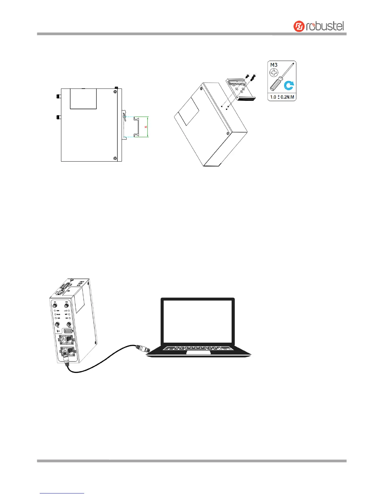 Use 3 pcs of M3*6 flat head Phillips screws to fix the DIN rail to the router, and then hang the DIN rail on the