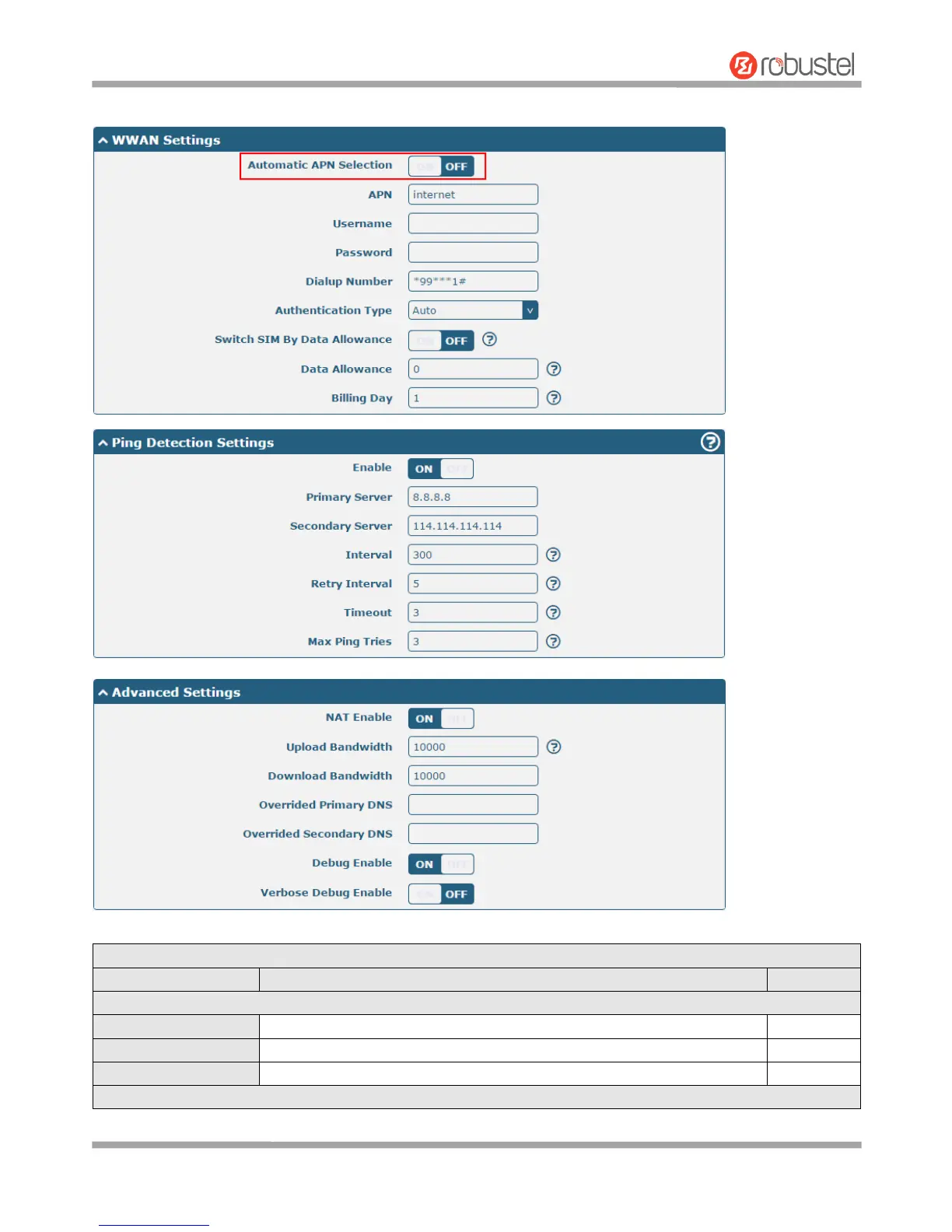 The window is displayed as below when disabling the Automatic APN Selection option.