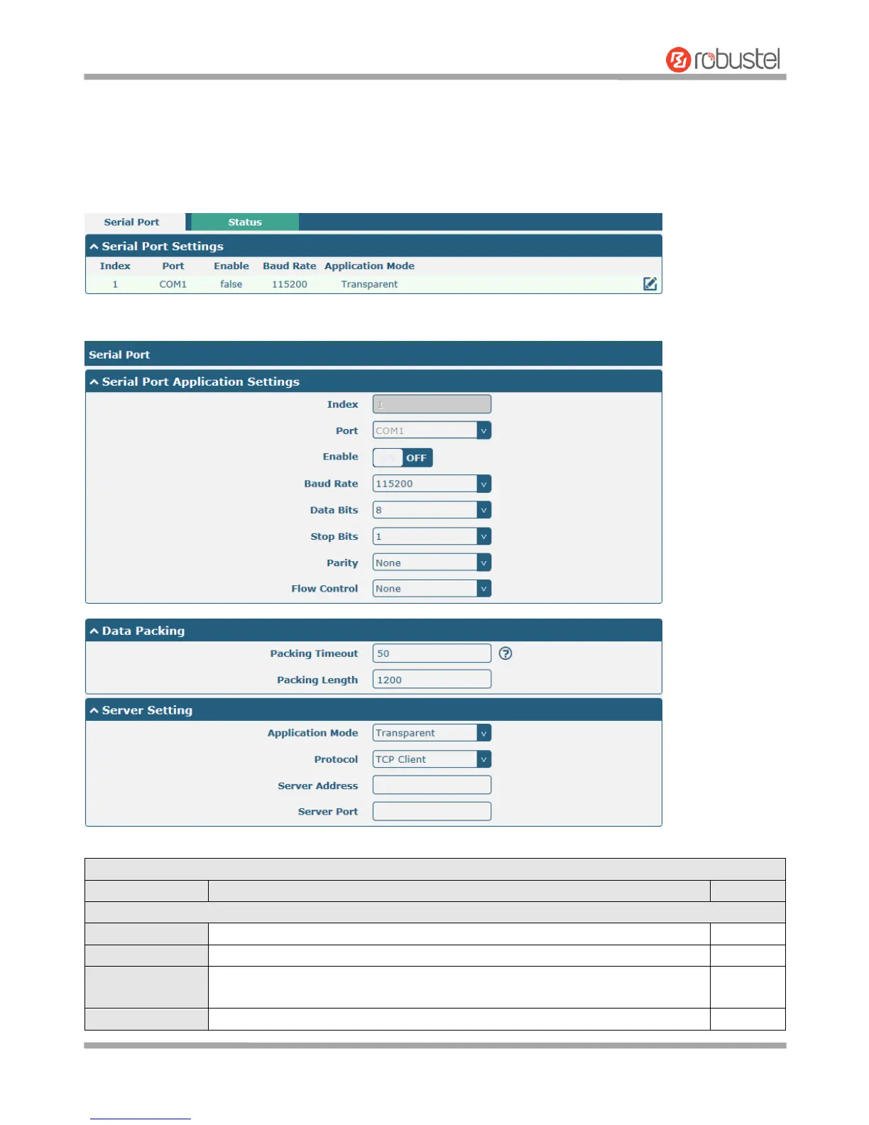 This section allows you to set the serial port parameters. R3000 Quad Router supports one RS-232 or one RS-485