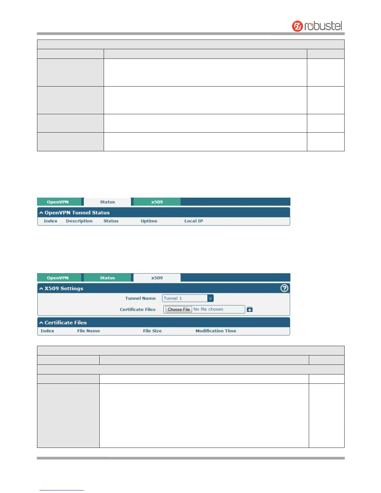 User can upload the X509 certificates for the OpenVPN in this section.