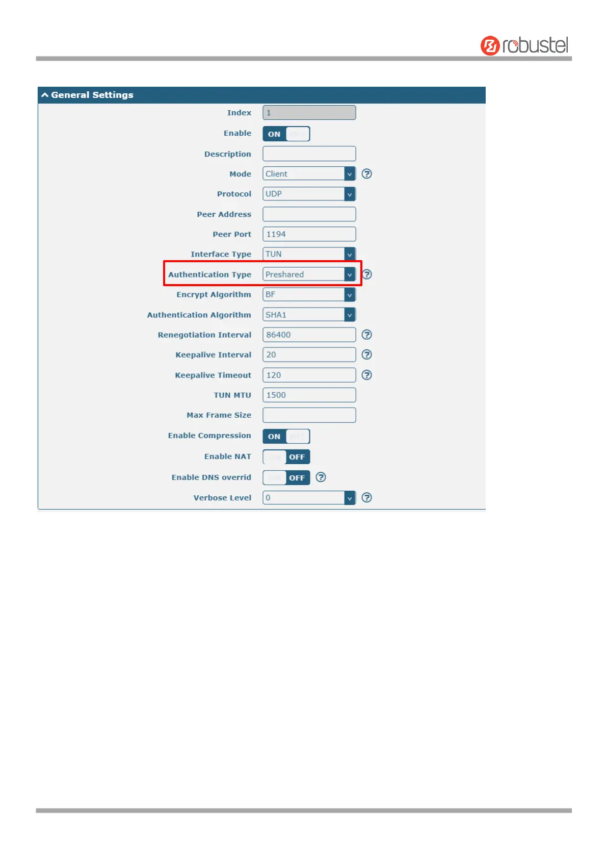 The window displays as follows when "Preshared" is selected as the authentication type.