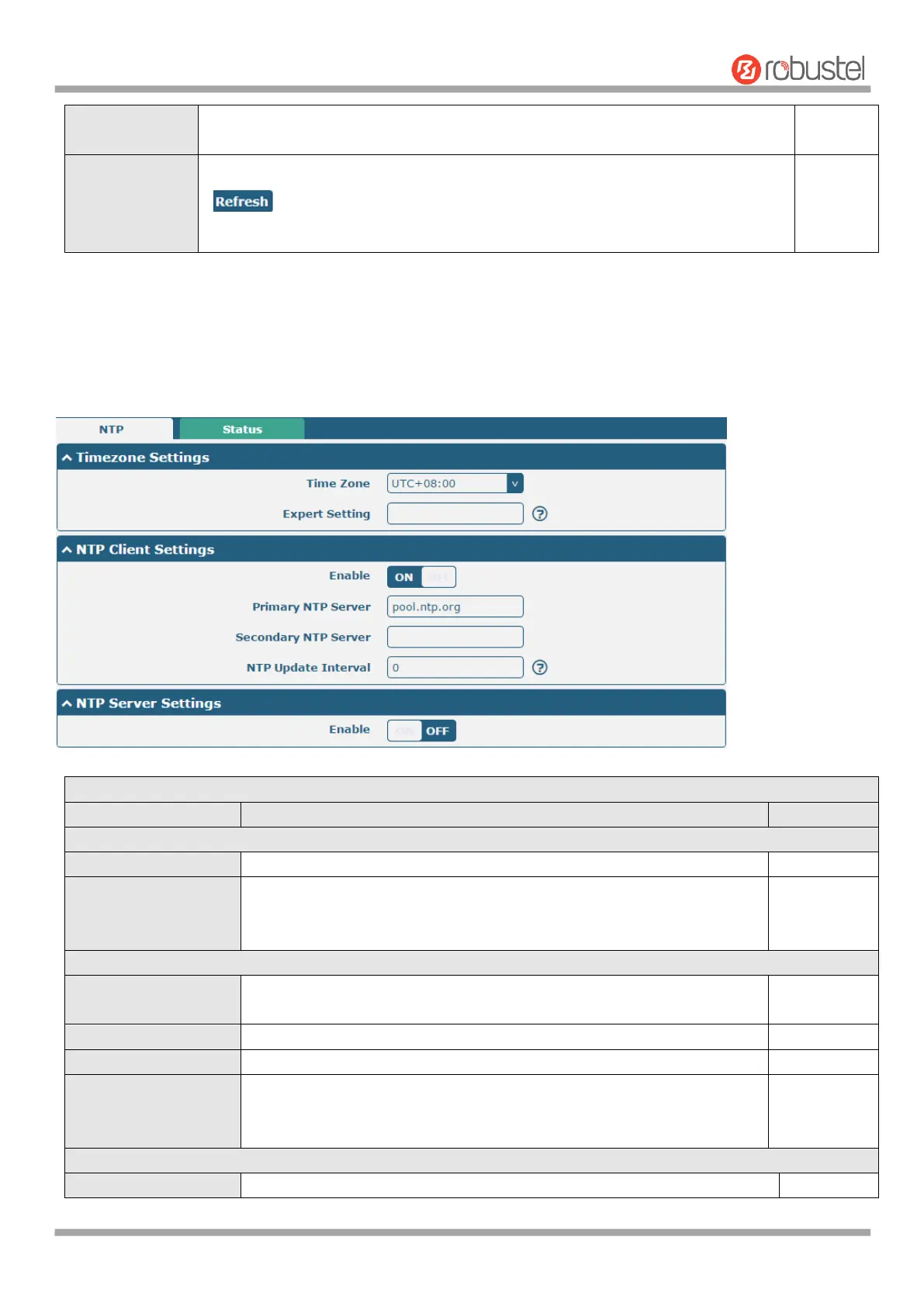 This section allows you to set the related NTP (Network Time Protocol) parameters.