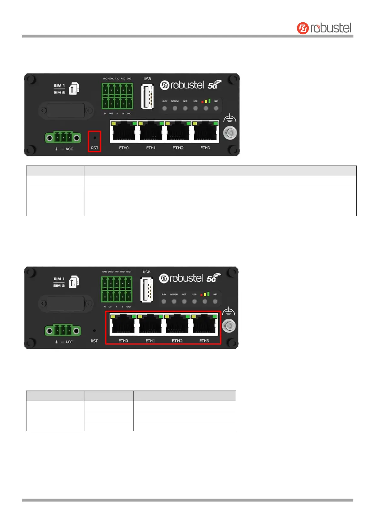 There are four Ethernet ports on R5020, including ETH0 (POE), ETH1, ETH2, ETH3. Each has two LED indicators. The