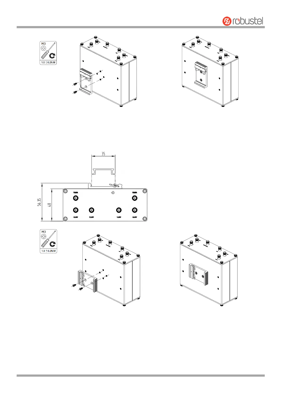 Use 2 pcs of M3*6 stainless flat head Phillips screws to fix the DIN rail to the router, and then hang the DIN rail on the