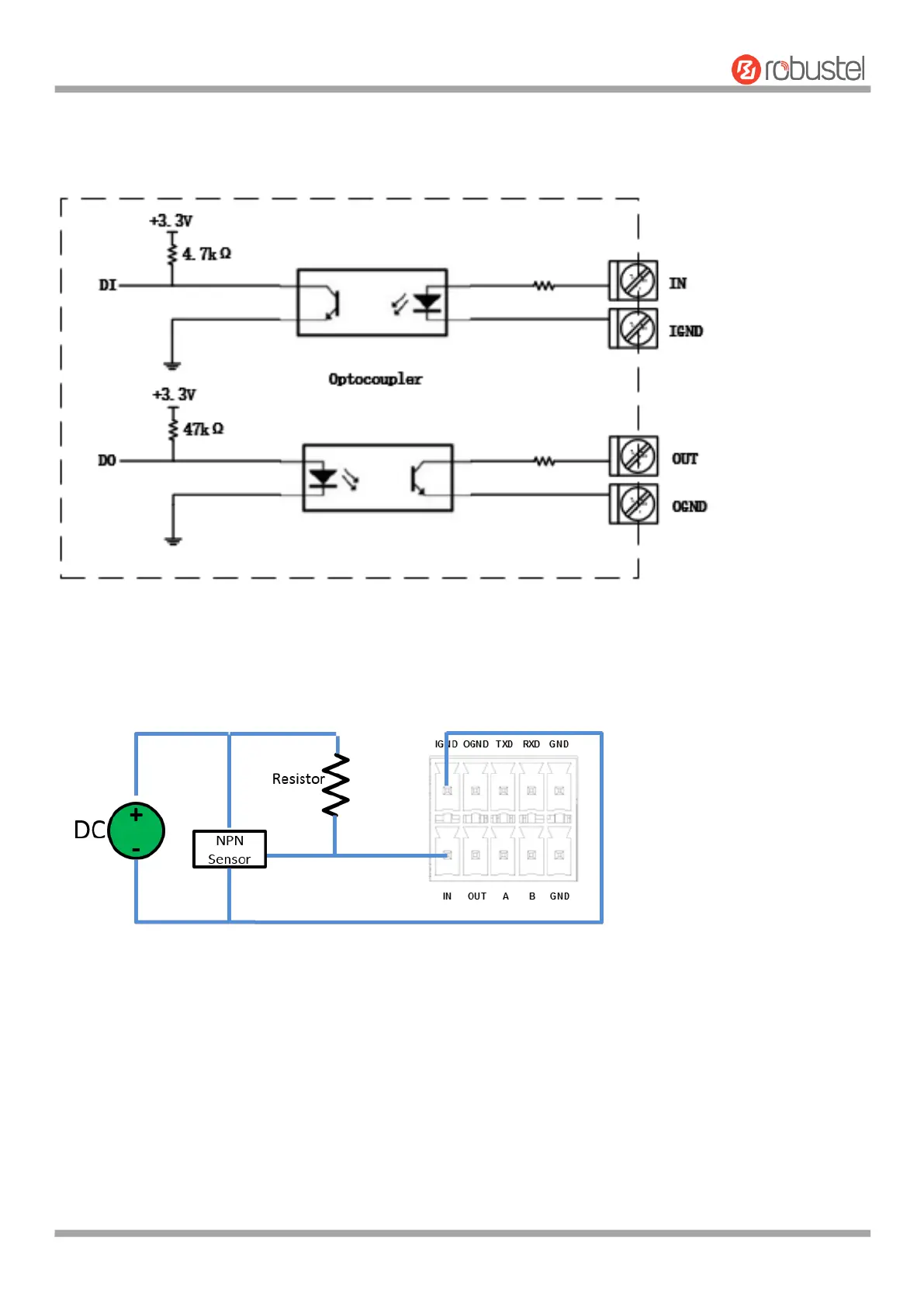 The R5020 supports 1 channel DI and 1 channel DO by default. It can support 2 channels of DI or 2 channels of DO by