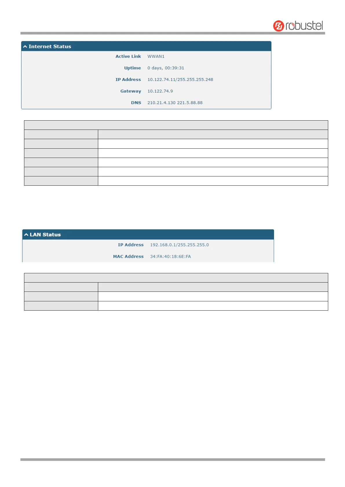 This section shows the LAN status information of the router.