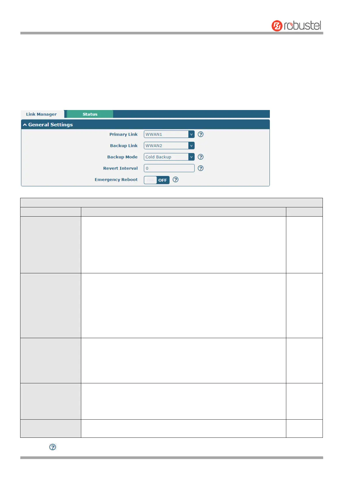 This section allows you to setup the link connection. Link management is a network link backup feature that provides
