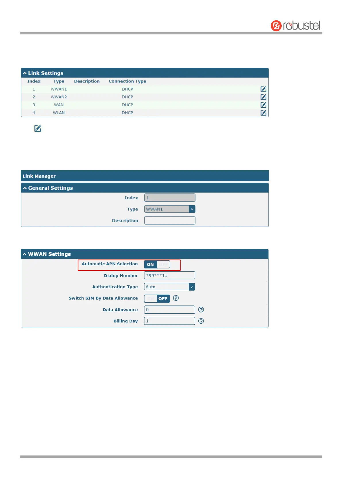 Link Settings allows you to configure the parameters of link connection, including WWAN1/WWAN2, WAN and