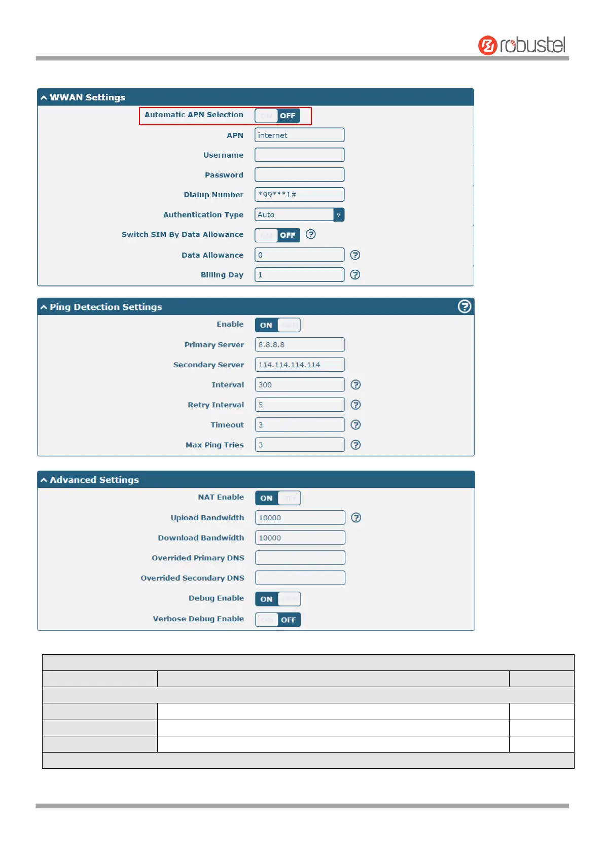 The window is displayed as below when disabling the Automatic APN Selection” option.