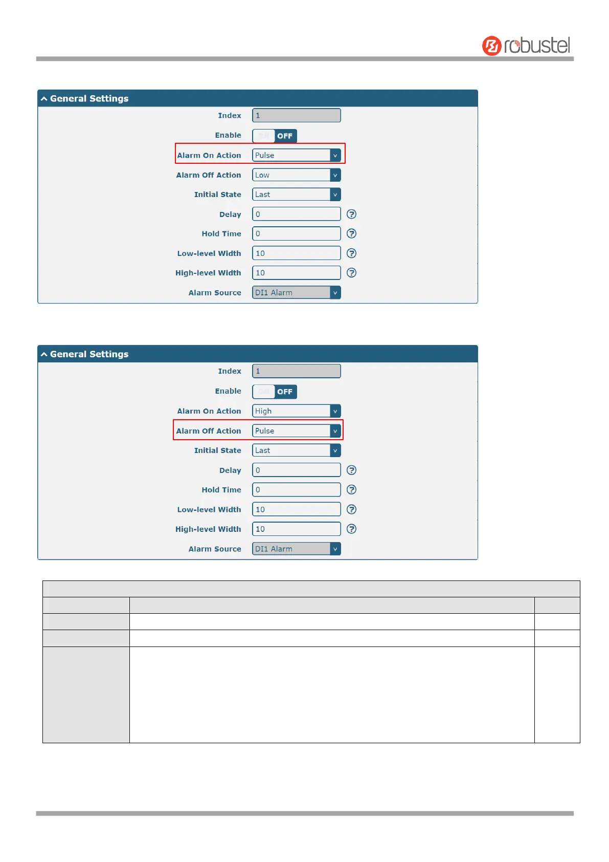 The window is displayed as below when choosing “Pulse” as the alarm off action.