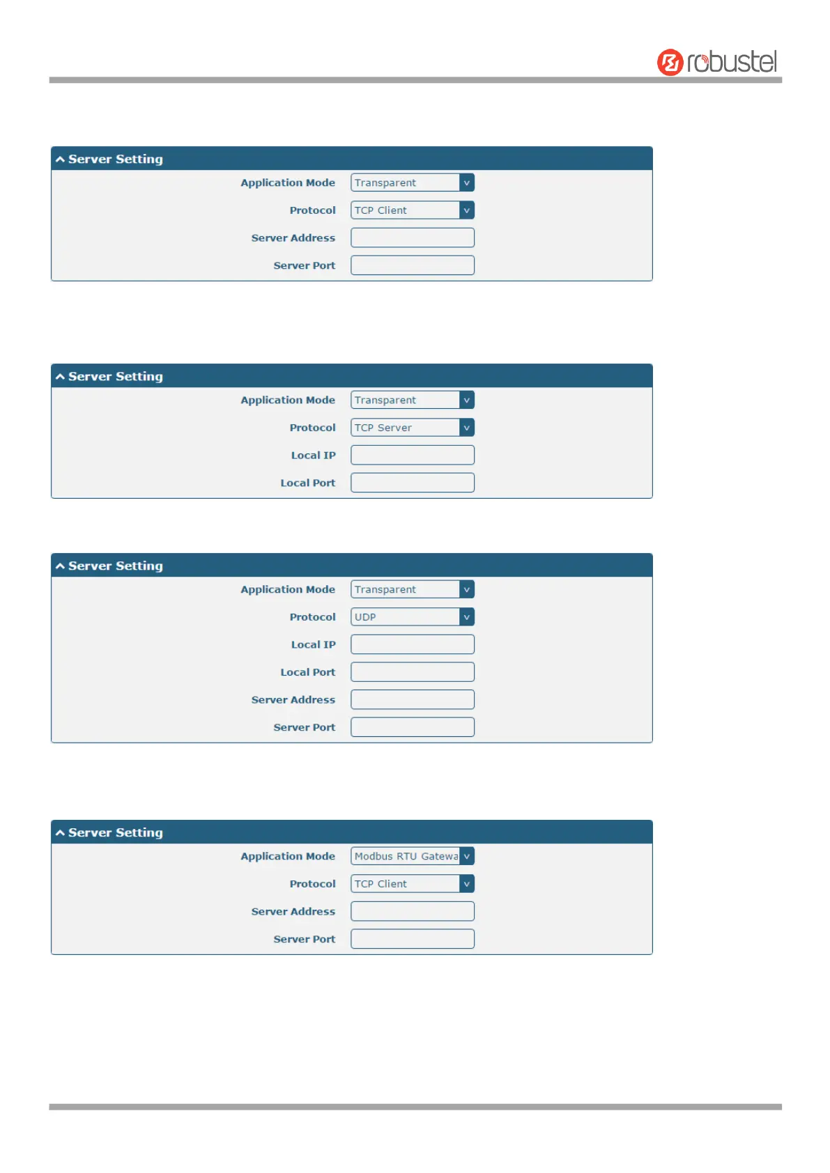 The window is displayed as below when choosing “Modbus RTU Router” as the application mode and “TCP Client” as