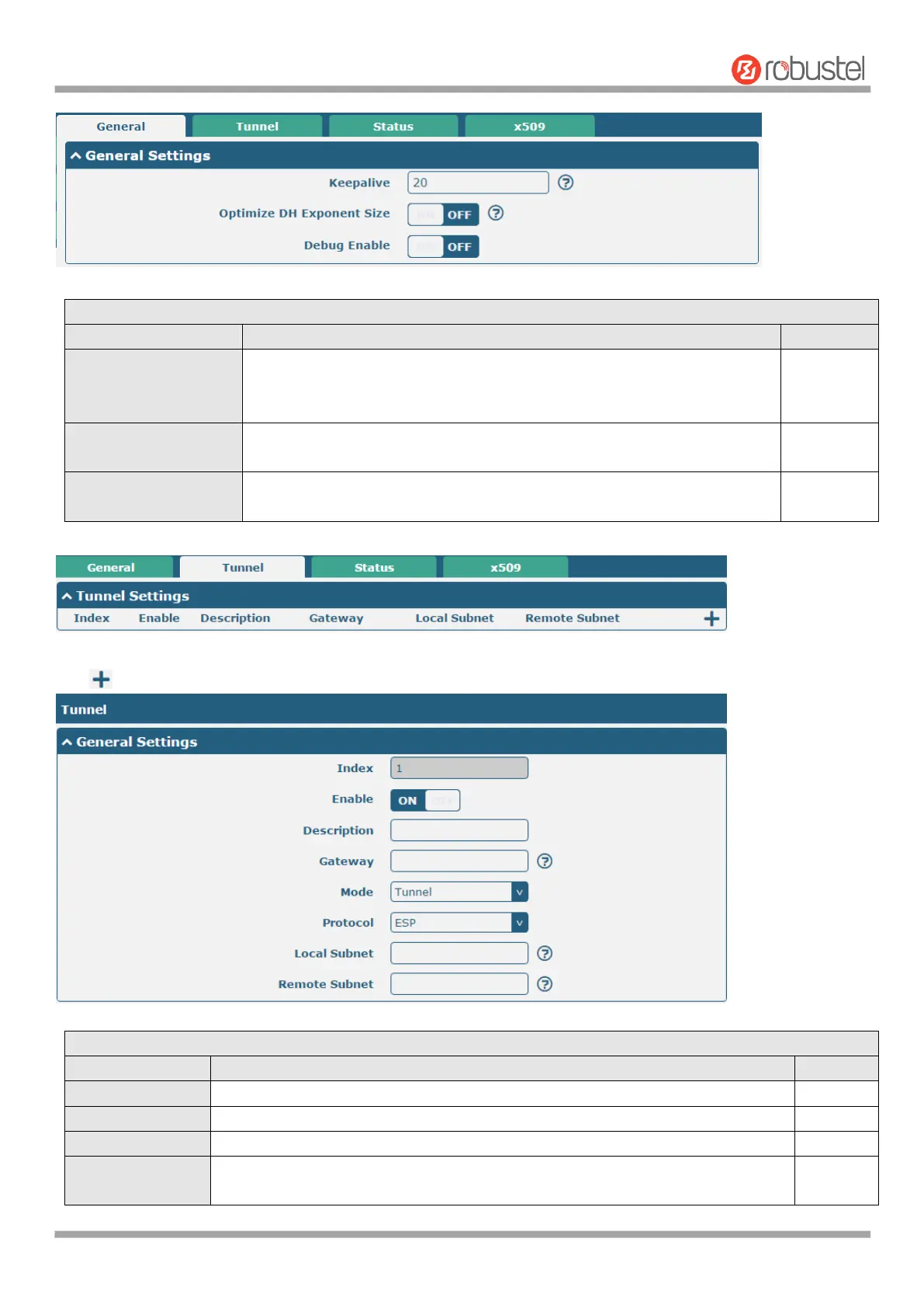 Click to add tunnel settings. The maximum count is 6.