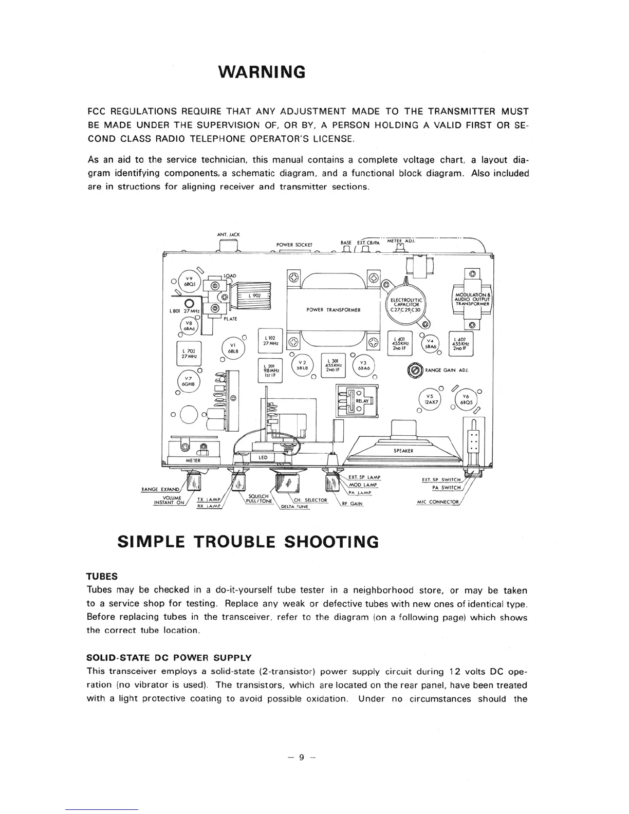 Robyn T-240D - Service Technician Warning; Simple Troubleshooting Guide; Tube and Power Supply Issues