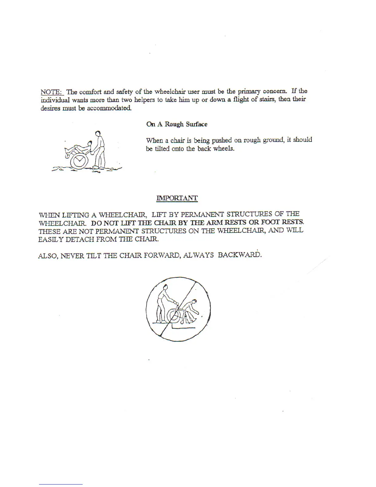 Roc Wheels Rockit - Wheelchair Handling Precautions; Rough Surface and Lifting Safety