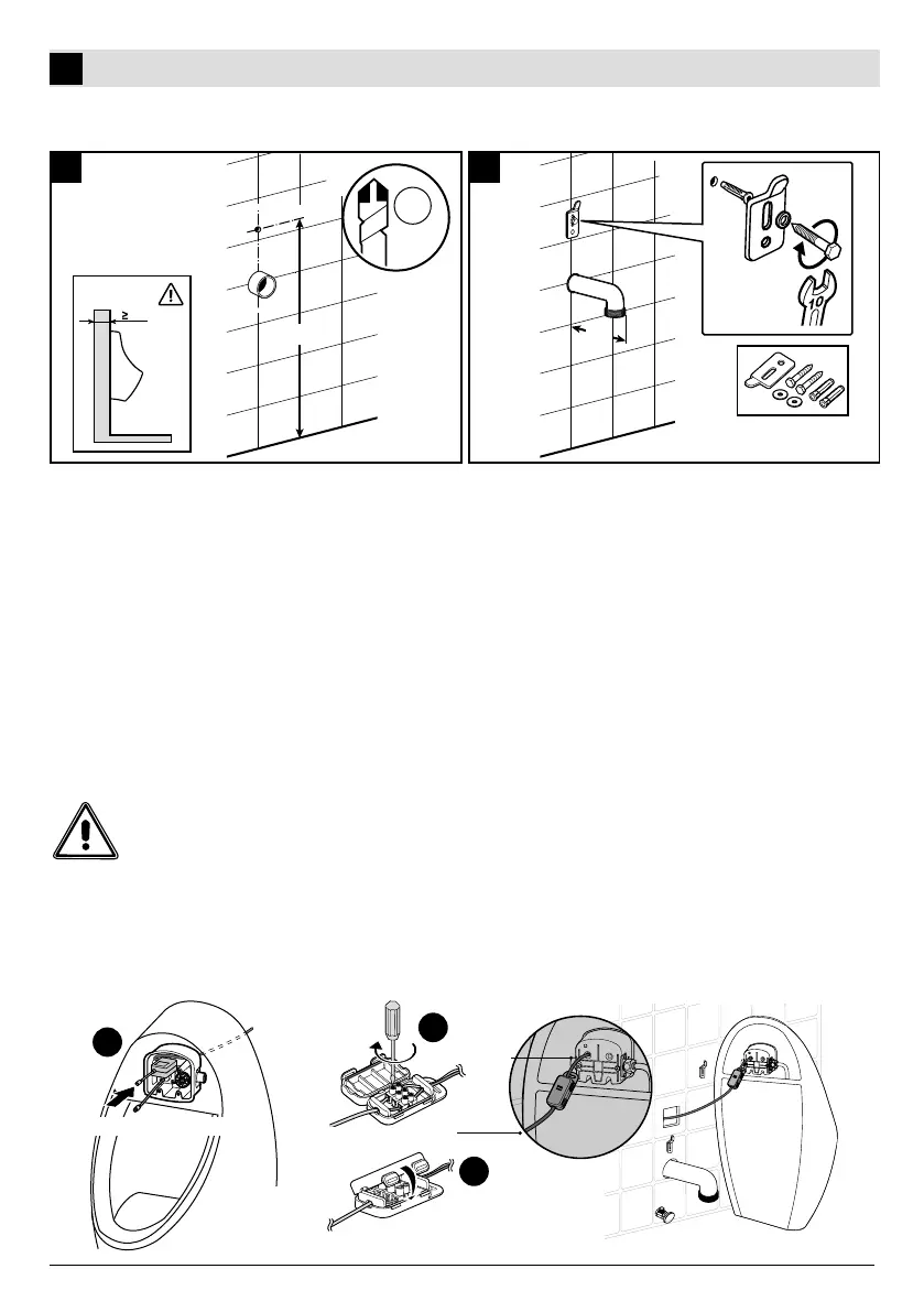 3. Close cables connection box and locate it on a free space in order not to interfere with the installation of the urinal on the wall.