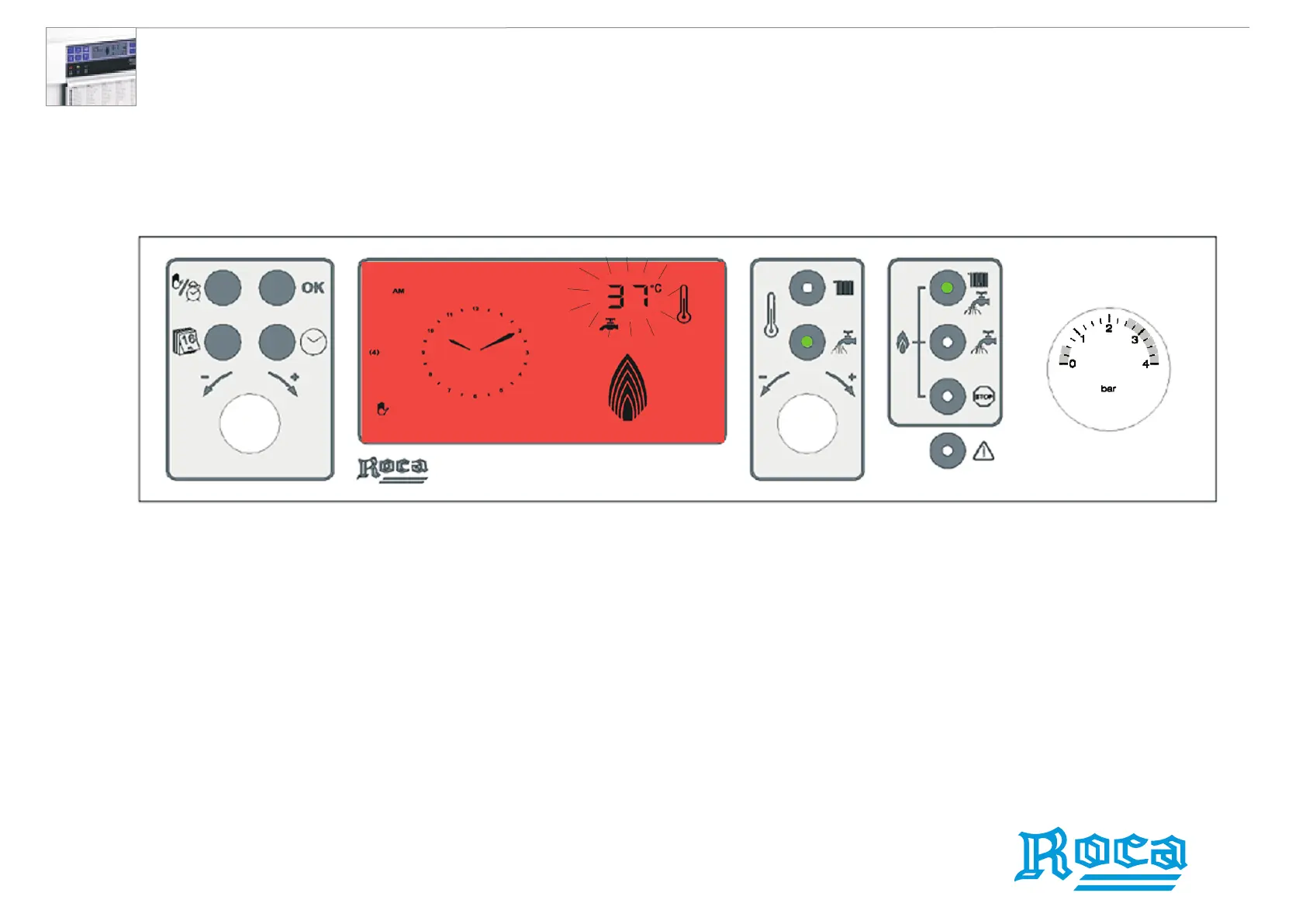 1. Press button for Central Heating + DHW service. The green indicator lamp
