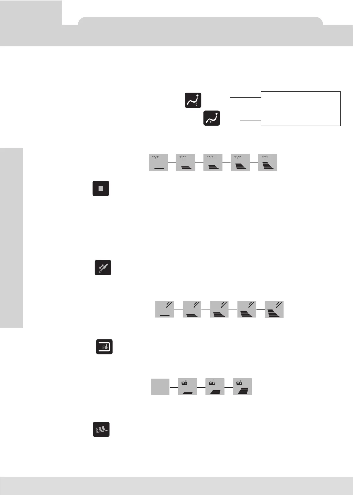 - Einstellung des Wasserdrucks. Drücken Sie▲ oder ▼, um den Wasserdruck einzustellen.