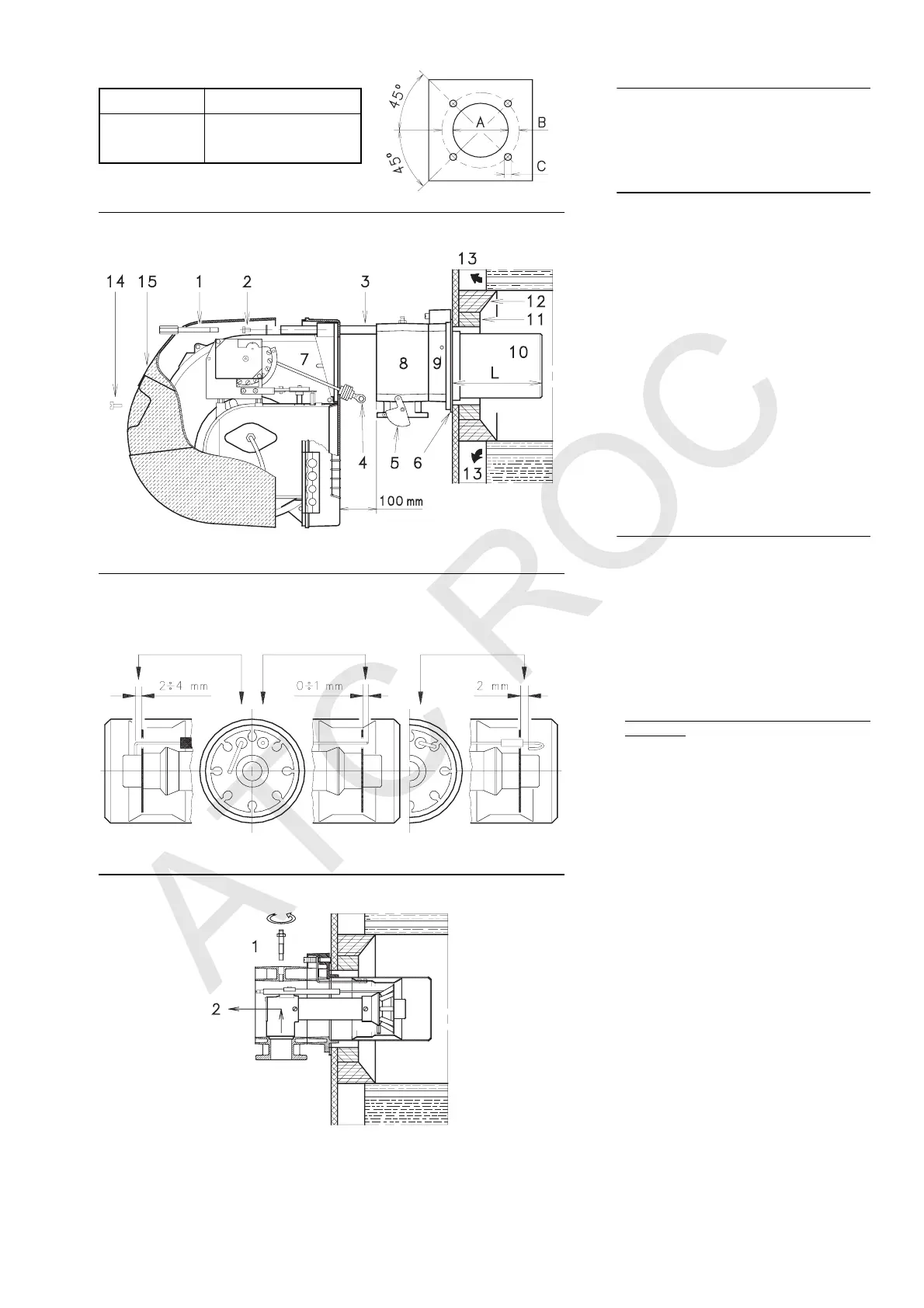 quemador por las guías 3) unos 100 mm;