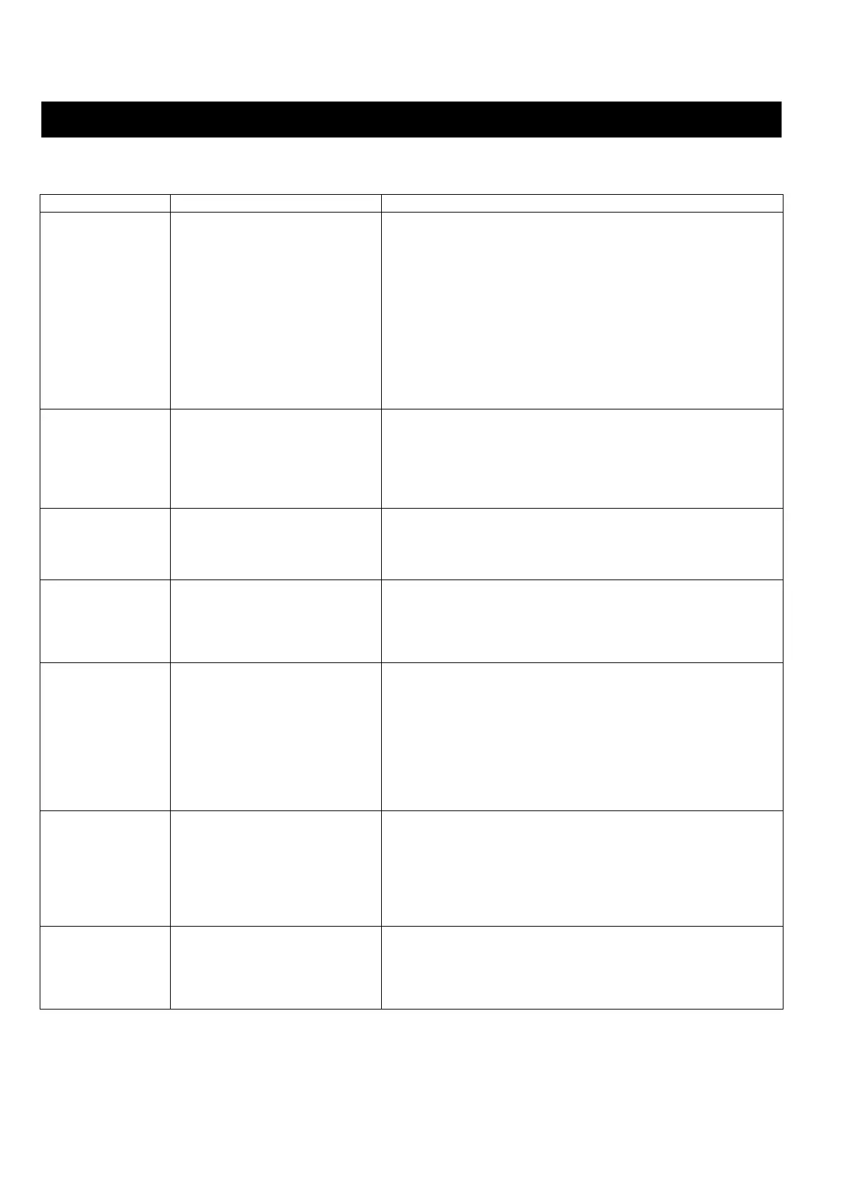 Below is a table of possible anomalies, their causes and solutions: