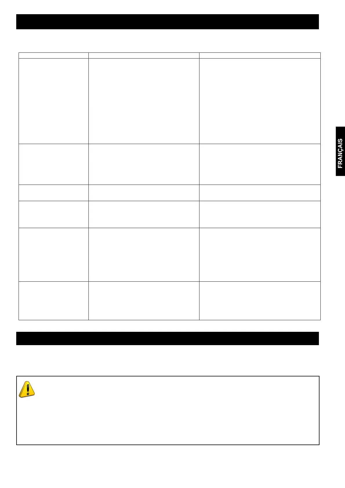 Le tableau présenté ci-dessous indique les anomalies rencontrées, leurs causes et les mesures à mettre en œuvre pour résoudre