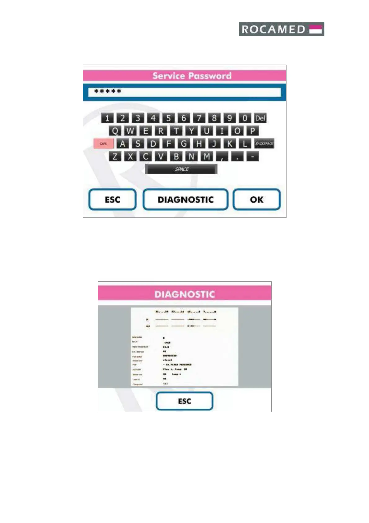 Without the Service Password it is possible to access the Diagnostic Panel by pressing on the