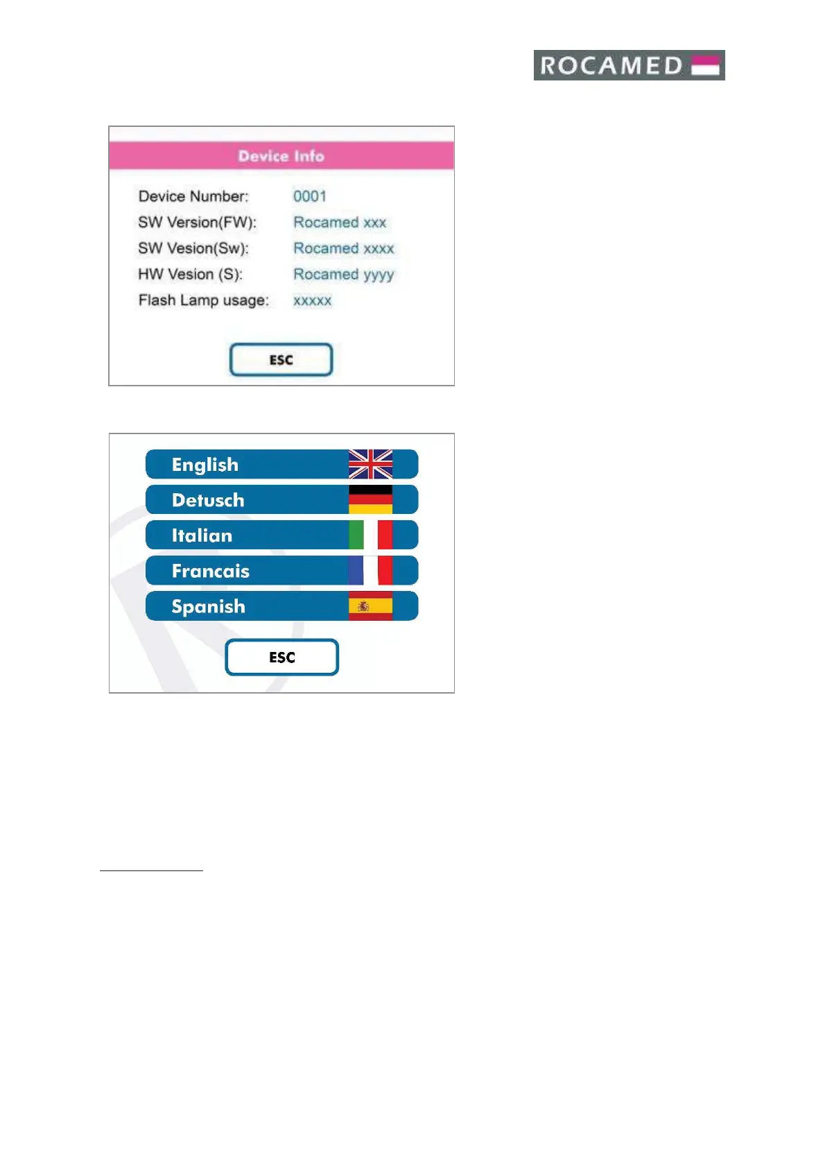 ROCAMED MH01 - Device Info; Language; Laser Emission