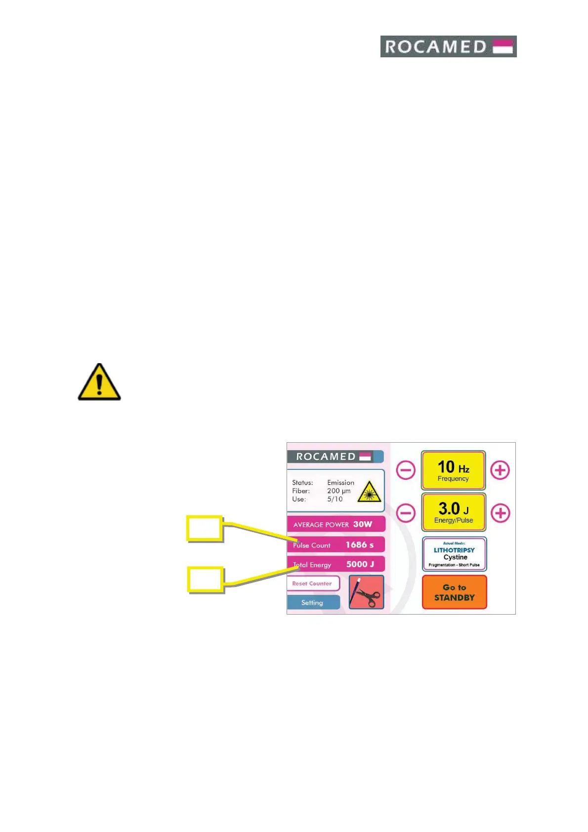 During the emission the values of Joules (A) emitted and Lasing Time (B) will be increased.