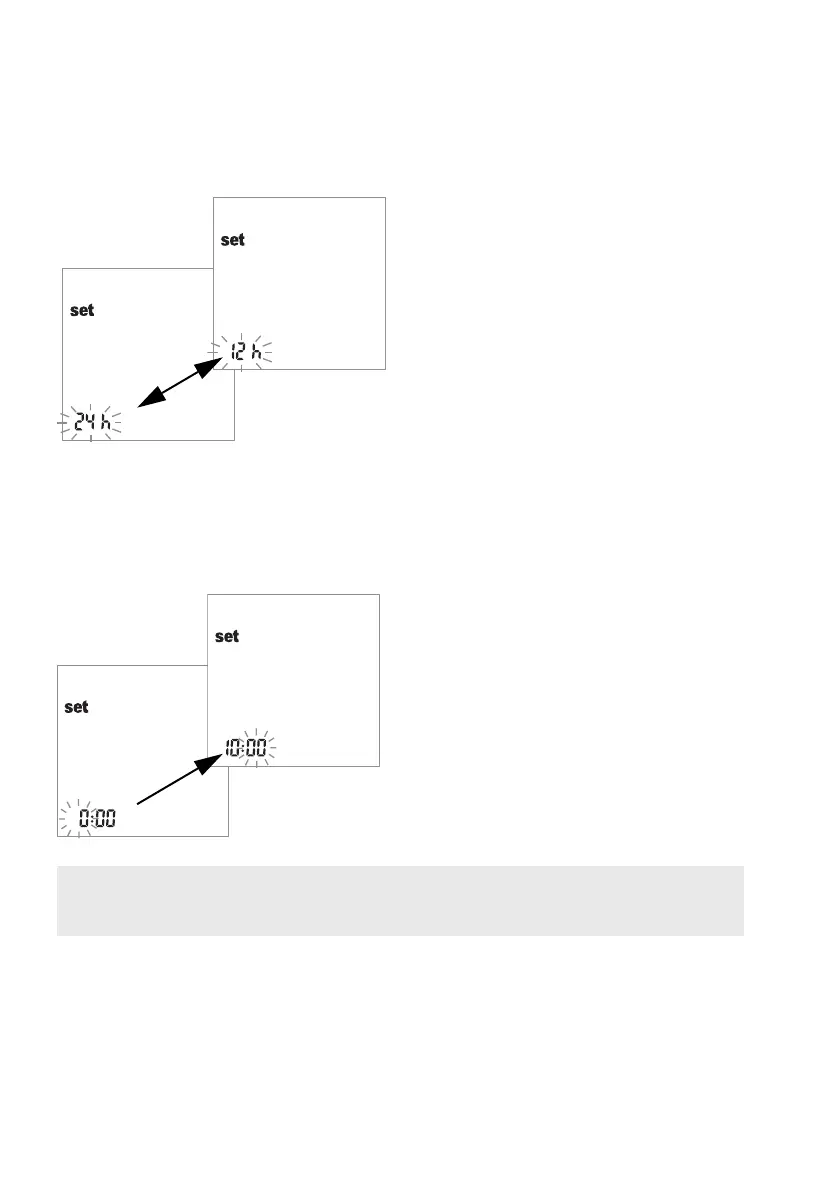 Seleccione agora o formato da hora. É possível escolher entre o formato de 24 horas (pré-defini-