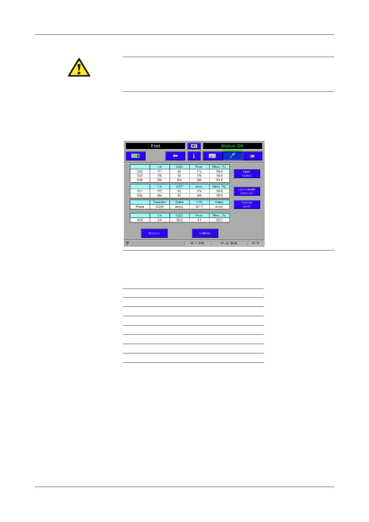 Inject sample distributor: Inject a sample and press [Measure]. The measured values of sample sensors are